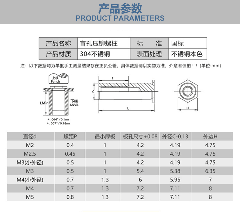 BSOS-3.5M3-6 不銹鋼壓鉚螺母柱