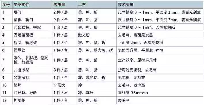 電梯鈑金件的基本加工工藝與其他鈑金件相同,是以剪切、沖壓、折彎和連接為主要成形工藝。下面簡要介紹電梯鈑金件的工藝特征與技術要求。