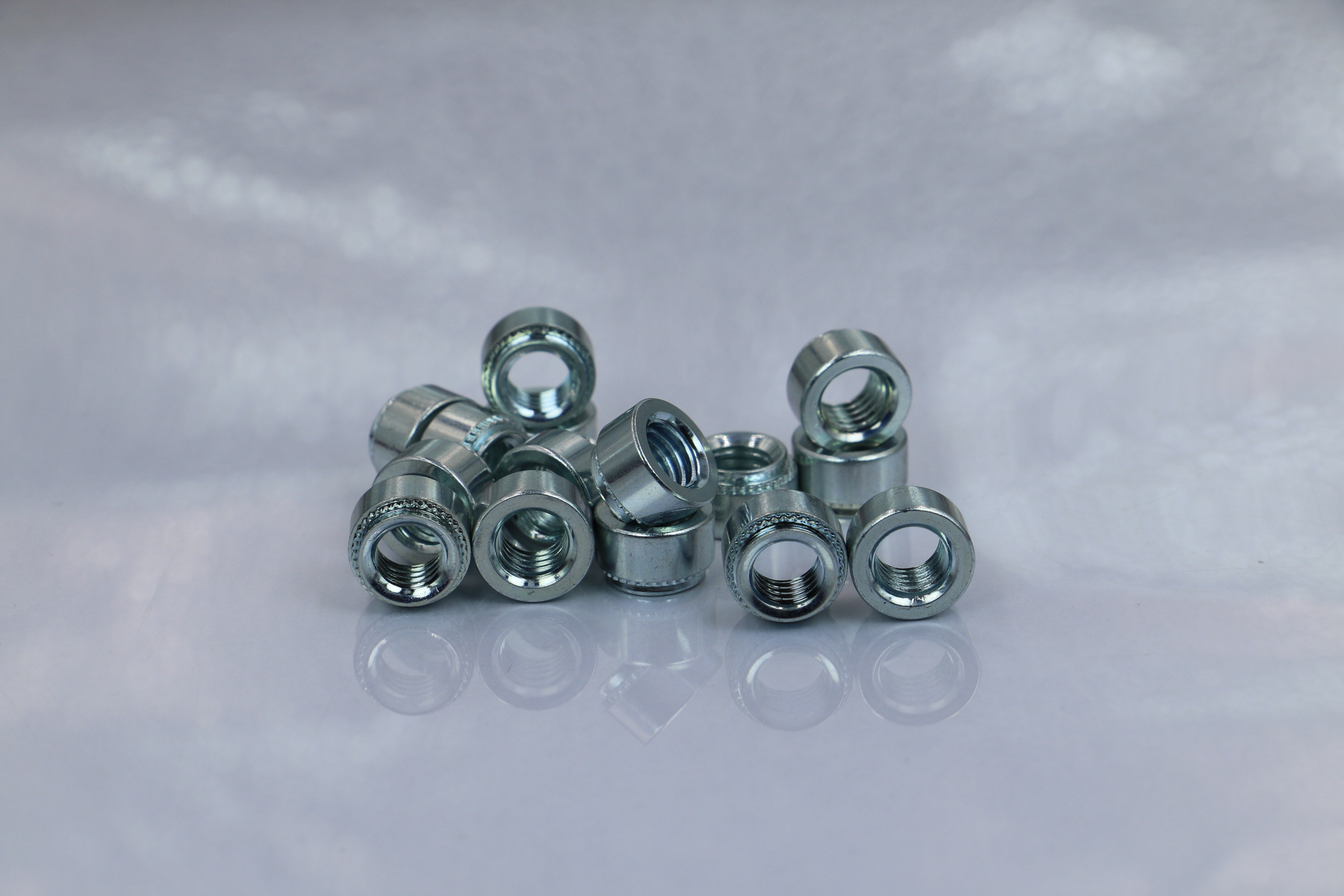 加平墊圈:墊圈指墊在被銜接件與壓鉚螺母之間的零件。普通為扁平形的金屬環,用來維護被銜接件的外表不受螺母擦傷,分散壓鉚螺母對被銜接件的壓力。