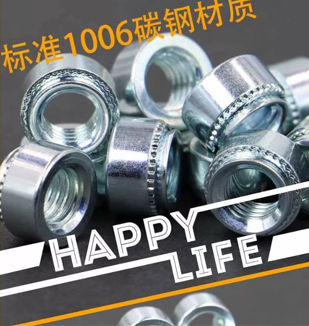 為了實現電動汽車身上零部件的安裝與緊固目的,東莞螺盛盾五金廠家采取的技術方案專業生產汽車行業專用壓鉚螺母,壓鉚螺母外形呈圓形,一端帶有壓花齒及導向槽。其原理是通過壓花齒壓入鈑金的預置孔位,一般而言預置孔的孔徑略小于壓鉚螺母的壓花齒,通過壓力使壓鉚螺母的花齒擠入板內使預置孔的的周邊產生塑性變形,變形物被擠入導向槽,從而產生鎖緊的效果,從而壓鉚螺母與車身鋁板鉚壓連接更堅固緊密了。
